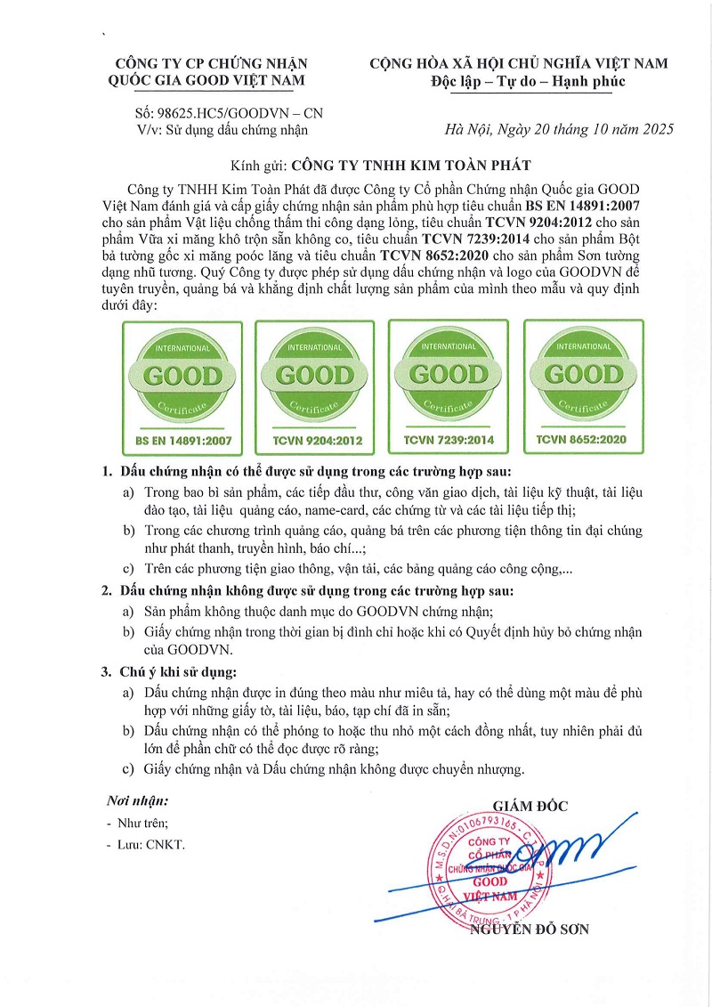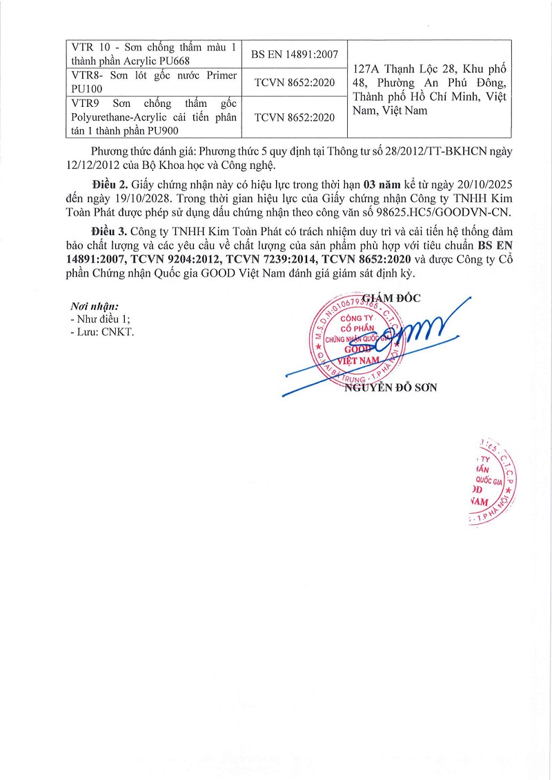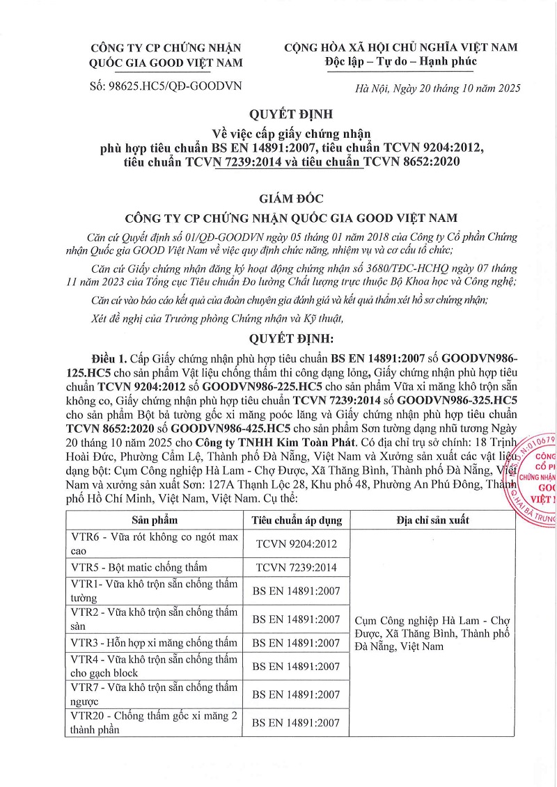 Tầm nhìn: Trở thành doanh nghiệp dẫn đầu Việt Nam trong lĩnh vực vật liệu xây dựng gốc xi măng và giải pháp chống thấm vô cơ, kiến tạo hệ sinh thái sản phẩm xây dựng bền vững – an toàn – tiết kiệm cho mọi công trình, hướng đến tiêu chuẩn xanh và tuổi thọ tối đa.